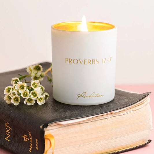 "A Friend Loves At All Times" Proverbs 17:17 Revelation Candle